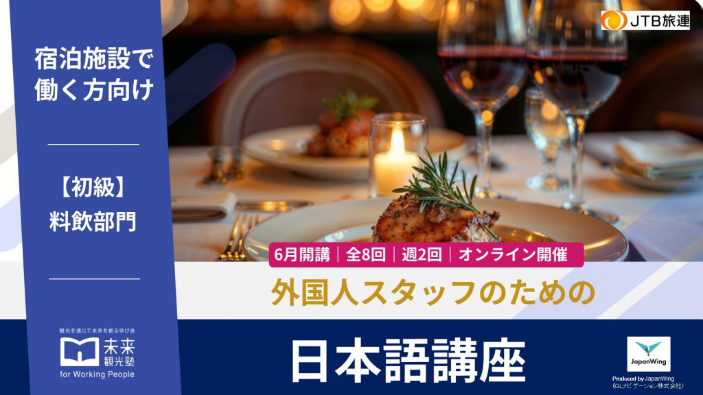 2026年6月2日 〜 2026年6月25日宿泊施設で働く外国人スタッフ向け日本語講座【料飲部門】